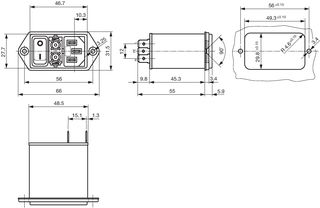 • 4 Functions: Appliance Inlet Protection class I, Line Switch 2-pole, Fuseholder for fuse-links 5 x 20 mm 1  or 2 pole, Line filter in standard and medical version