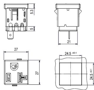 NEMA line Outlet 5-20R, Snap-in Mounting, Front Side, IDC- or Quick-connect for Line-Terminal